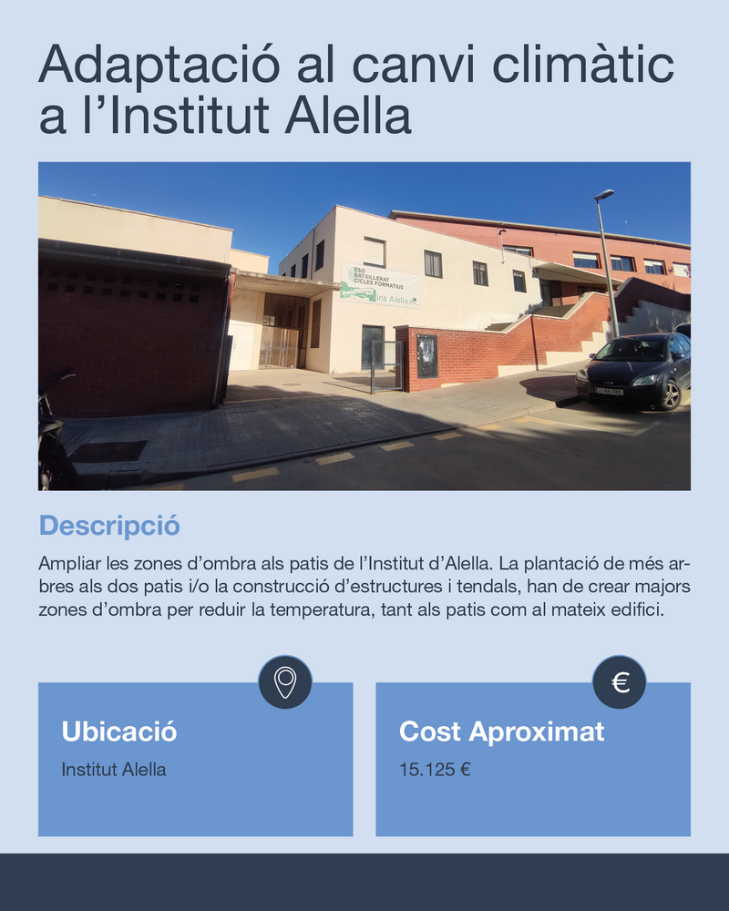 Aquest projecte té com a objectiu principal l'ampliació de zones d’ombra als patis de l’institut d’Alella.